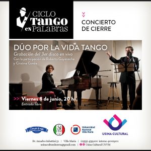 Eventos en 8 junio, 2018 Navegación de búsqueda y vistas de Eventos Mostrar la búsqueda de Eventos Búsqueda de Eventos Día de Navegación de vistas de Evento Ver como ListaMesDía « Día anterior Siguiente día » Todo el día Ciclo Melodías del Monte-Conciertos didácticos con Guadal 31 mayo, 2018 - 23 junio, 2018 Más información » 20:00 Dúo por la Vida Tango 8 junio, 2018 /20:00 - 21:30 Usina Cultural, Av Sabattini 51 Villa María, Córdoba 5900 Argentina + Google Map Más información » + Exportar eventos