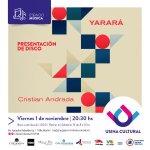 Presentación del 4to disco de estudio de Cristian Andrada. Bono contribución $100. Viernes 1 de noviembre 20:30 hs