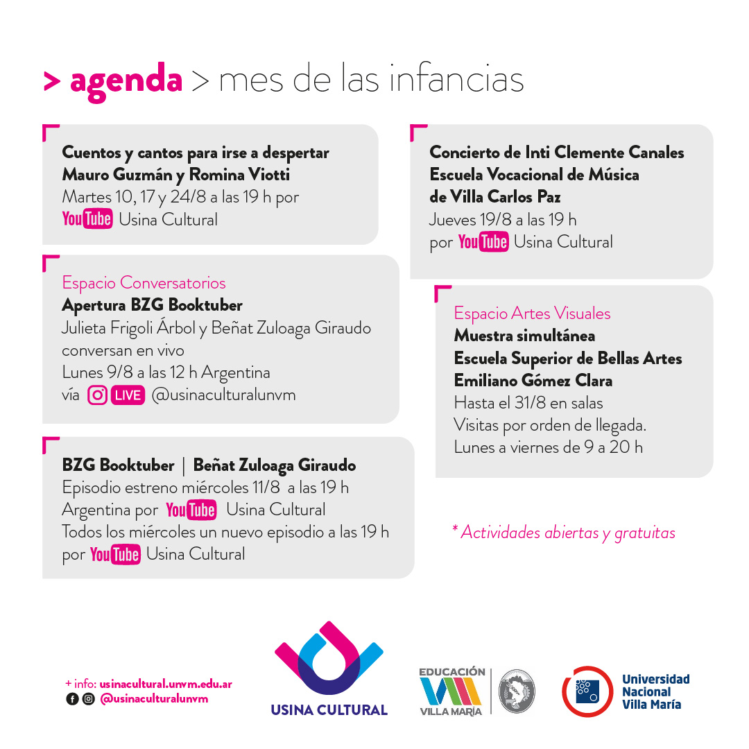 Mes de las Infancias – Todas las actividades se pueden ver en YouTube Usina Cultural