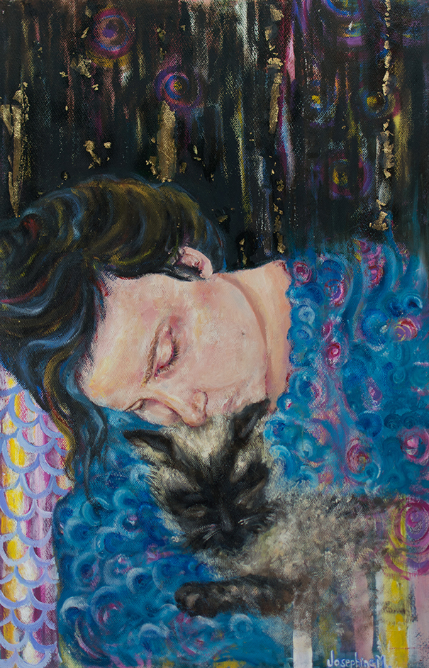Esta serie busca utilizar el lenguaje de la ilustración sobre formatos, tamaños y técnicas no convencionales para esta disciplina, convirtiéndola en una aventura pictórica que intervenga el espacio. Para ésto se trabaja sobre un texto, un cuento corto llamado “Amor imposible” de Delfina Maldonado, cuyo personaje principal es la voz en primera persona que relata una historia de amor particular.