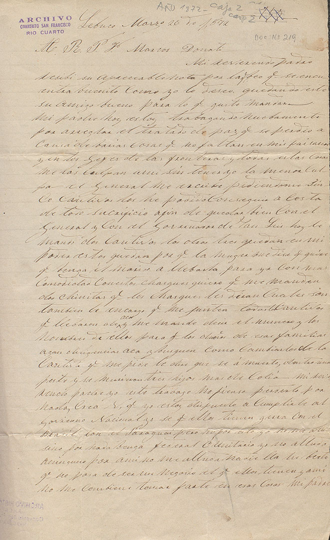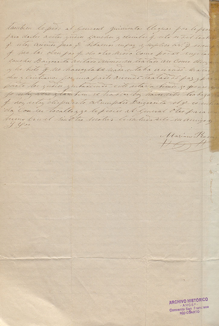 El material fue aportado por el Archivo Histórico “Fray José Luis Padros” del Convento San Francisco de la Ciudad de Río Cuarto, a través del aporte de fotografías y cartas de indígenas digitalizadas por el Centro de Estudios Históricos e Información Parque España (CEHIPE), sede Rosario. Parte del material que se exhibe está resguardado también, en distintos reservorios documentales del país: Archivo General de la Nación, Servicios Históricos del Ejército y Archivo Histórico de la Provincia de Córdoba.