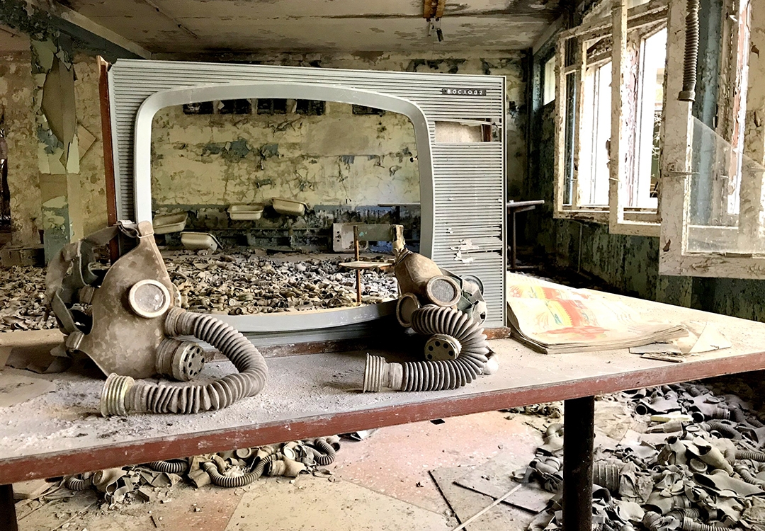 El 26 de abril de 1986, a la 1:23 de la mañana, explotó el reactor número 4 de la Central Nuclear Vladímir Ilich Lenin. La cantidad de materiales radioactivos que se liberaron a la atmósfera fue 500 veces mayor que la producida por la bomba atómica de Hiroshima. Después del accidente, se creó la Zona de Exclusión de 30 kms. y cerca de 700.000 personas —los llamados liquidadores— se desempeñaron en tareas de limpieza de pueblos y campos. Asimismo, se construyó un sarcófago sobre el reactor que fue reforzado por uno nuevo después del año 2000. En noviembre de 2016, el nuevo sarcófago fue inaugurado (fotografía): se trata de la estructura móvil más grande del mundo financiada por 28 países.